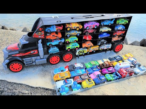 46タイプのミニカー&大きなブラックトラック|両面に乗せる。Put 46 minicars on the black truck. Please pay attention to various designs.